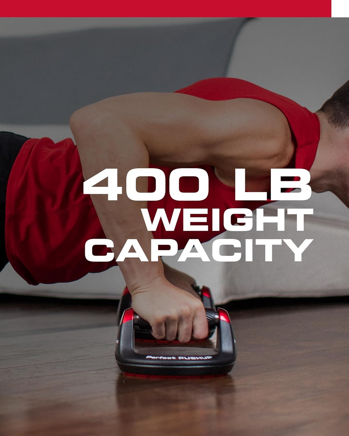 The Perfect Pushup Elite from the Perfect Fitness Store is engineered for enhanced muscle engagement with its innovative rotating handle design and smooth steel ball bearings, offering natural movement and reducing wrist strain. Ergonomic, non-slip grips and a large, stable 8-inch base ensure maximum comfort and safety, even during intense workouts. Supporting up to 400lbs and designed for any floor surface, it's an ideal choice for individuals wanting to maximize their push-up routine.